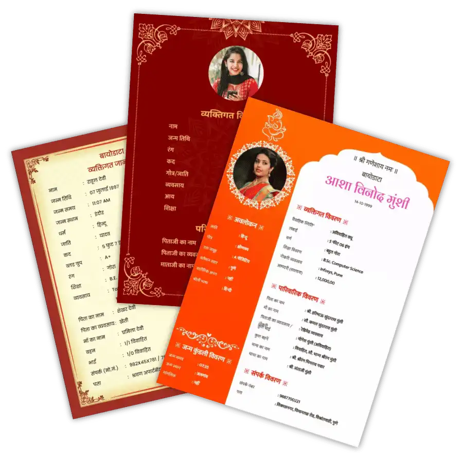 Aapka biodata aapki personality ka reflection hota hai. Humare biodata templates in Hindi aapko ek professional aur attractive look dete hain, jisse aapki shaadi ki possibilities aur strong ho jaati hain.